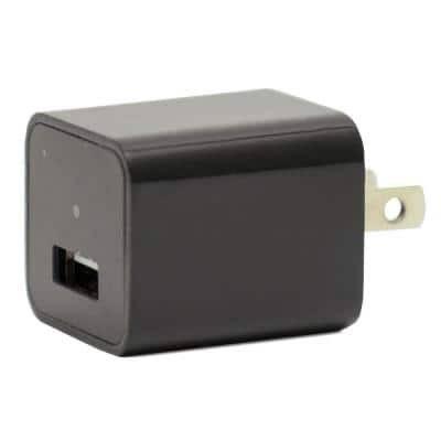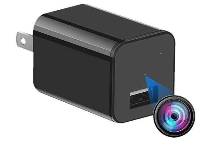 Hidden camera disguised as USB charger for covert surveillance.